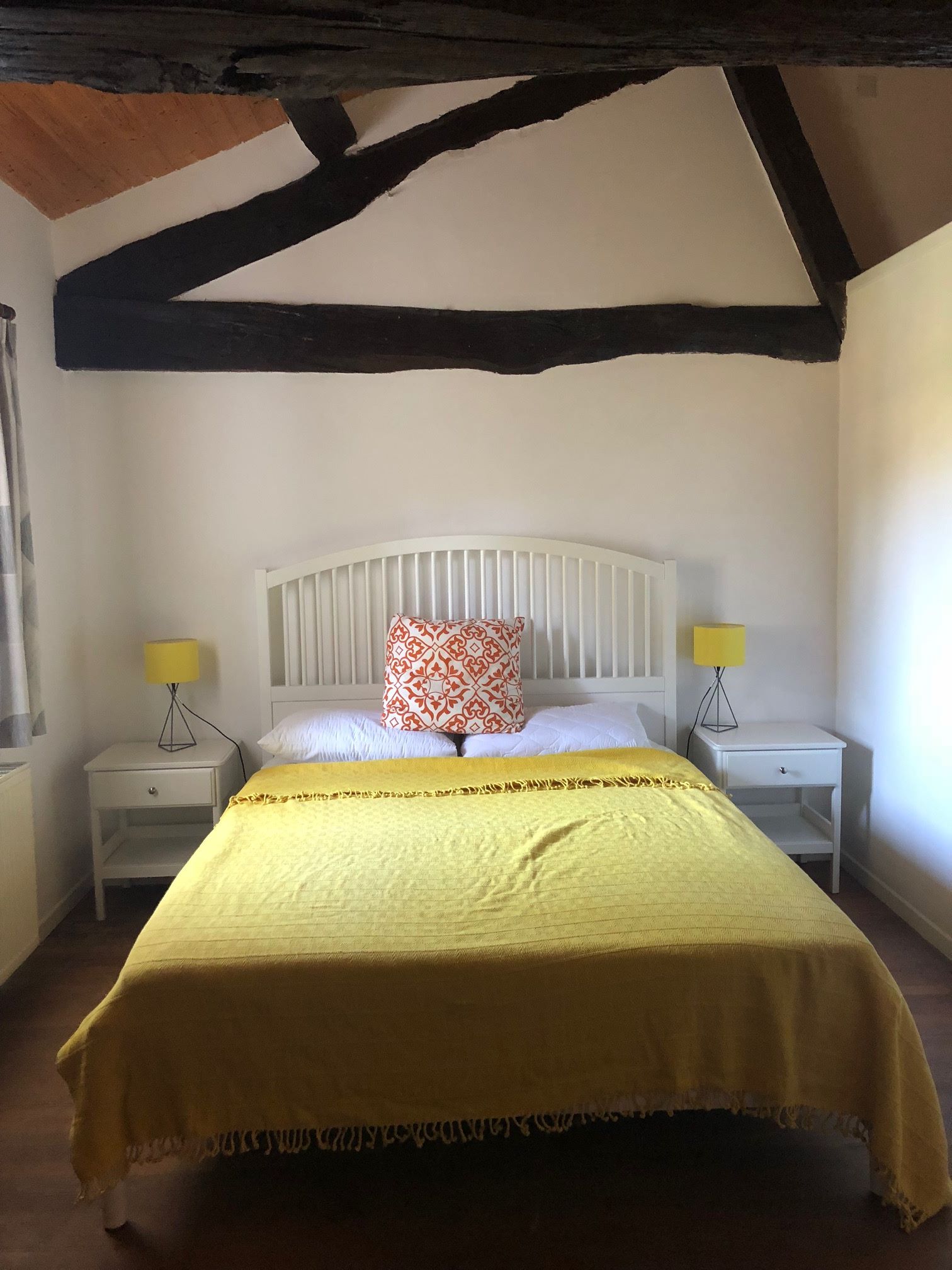 The largest gite on site with four bedrooms and accommodating up to 10 guests; one of these bedrooms is on the ground floor for those slightly less mobile, with an adjoining bathroom. Please note, there is a step down to the bathroom so not fully accessible to wheelchair users.