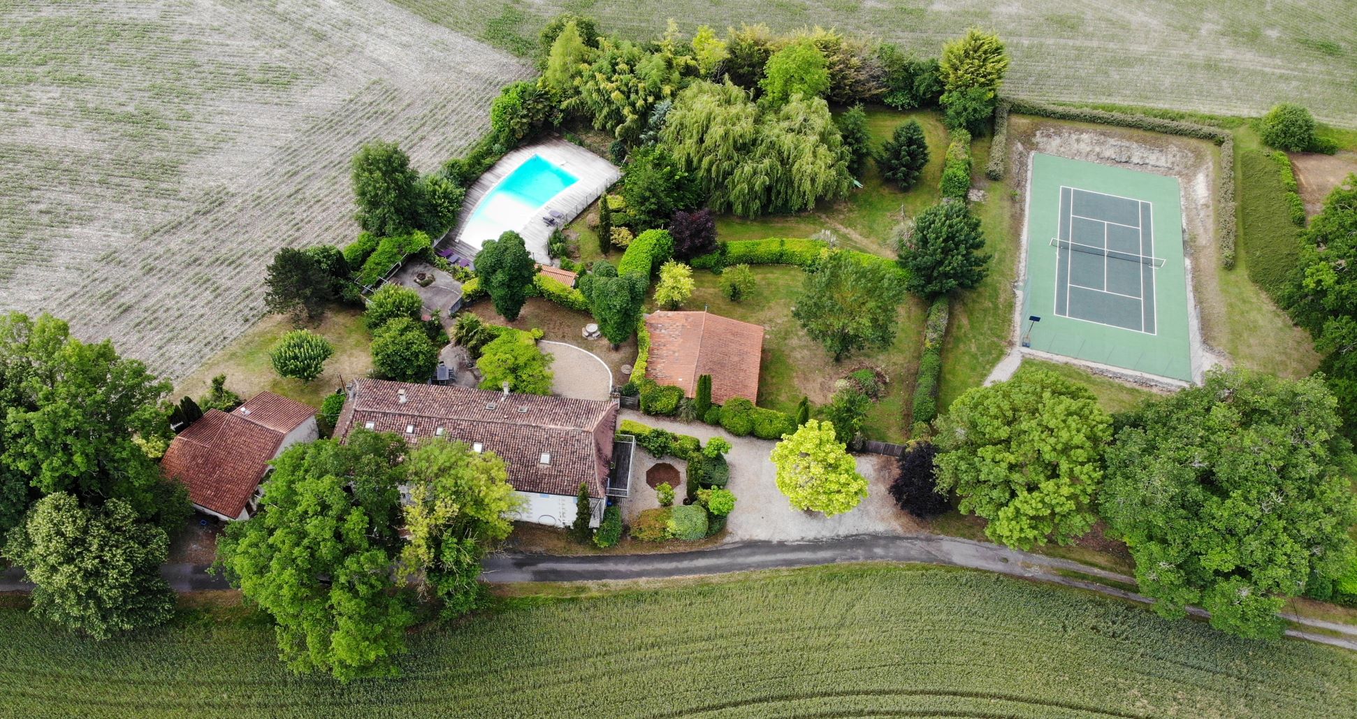 An 18th century farmstead comprising four gites, a large swimming pool and tennis court near Bordeaux